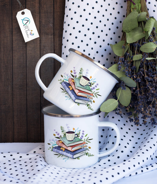 Könyves bögre levendulás díszítéssel