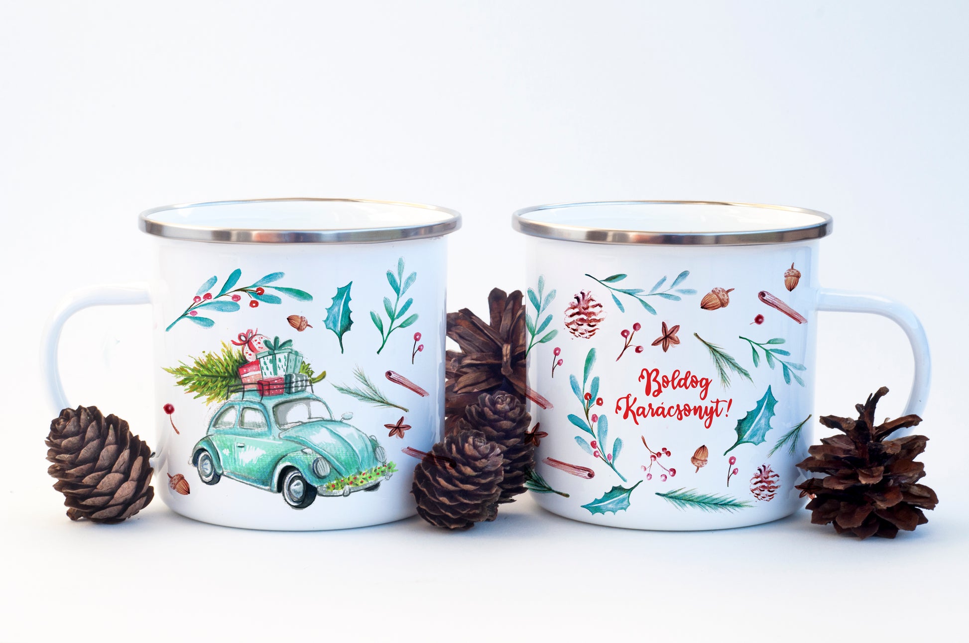 Ünnepi bögre zöld bogár autóval